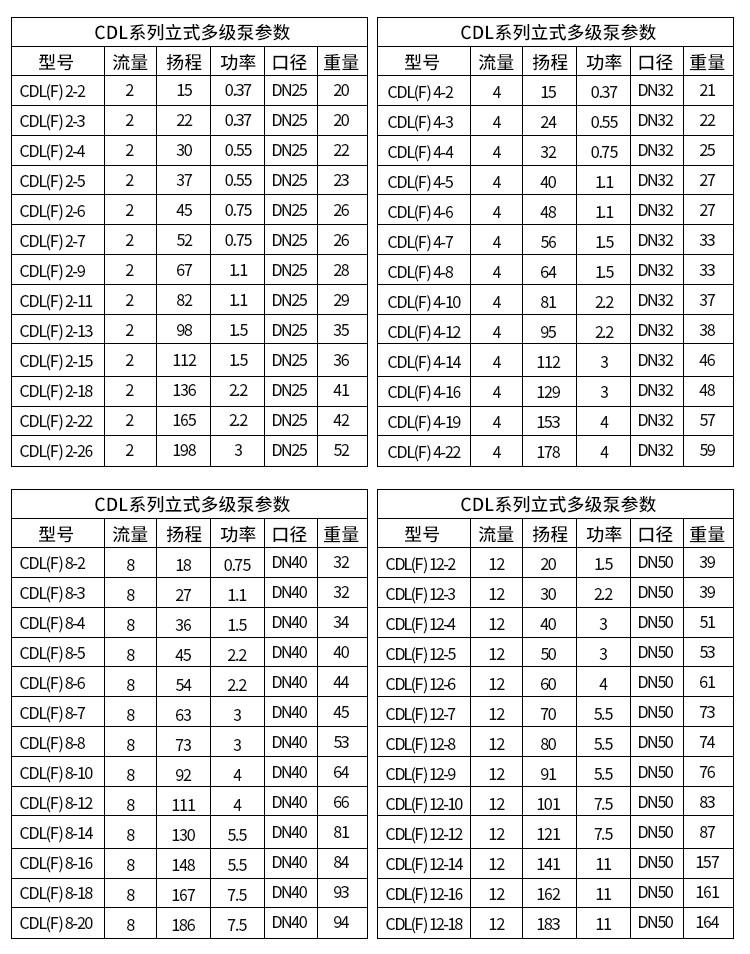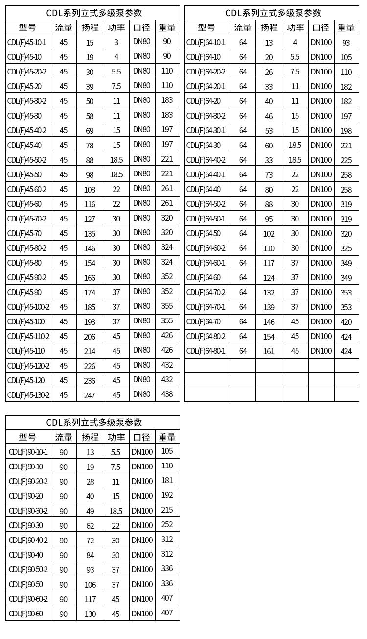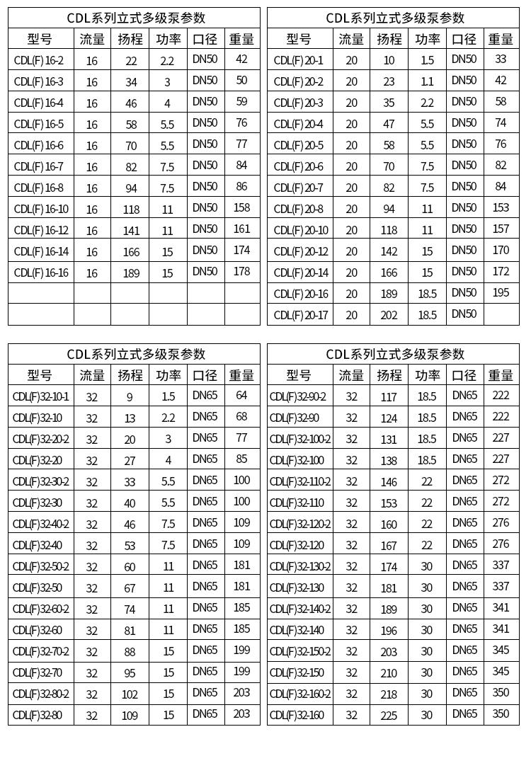 CDLF不鏽鋼多級泵技術參數