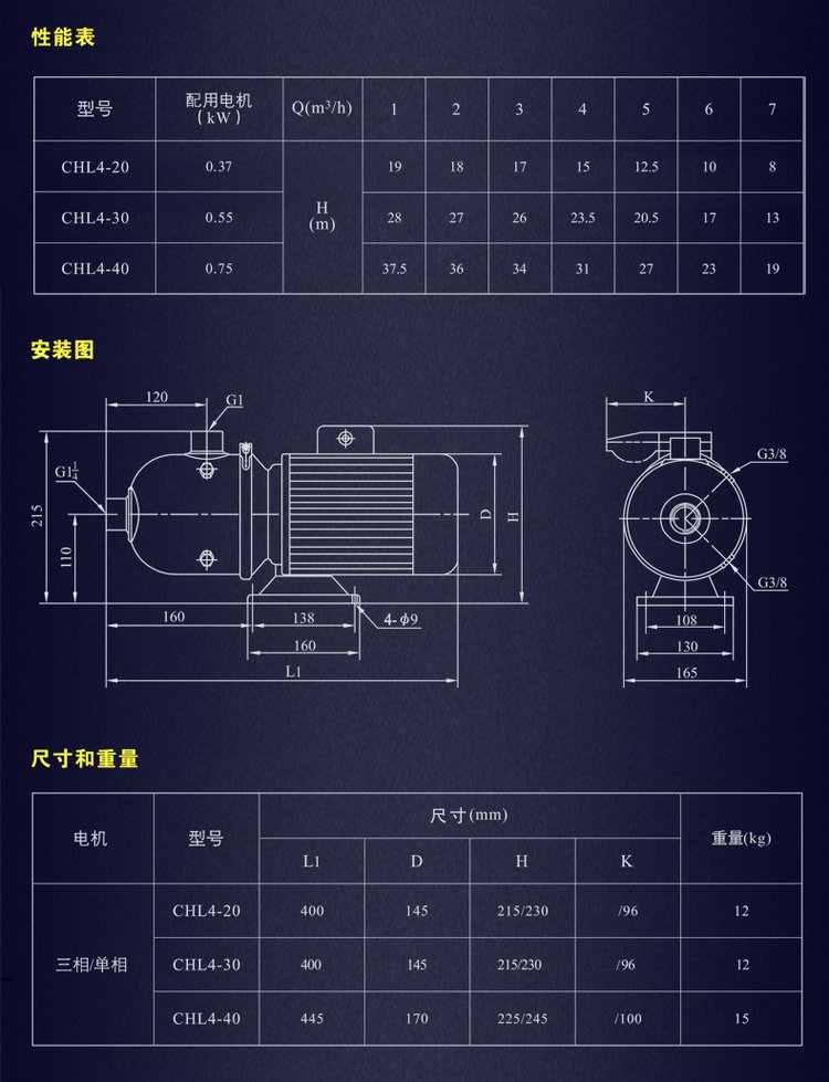 流量範圍:0.5m³/h~28m³/h   揚程範圍:5m~60m