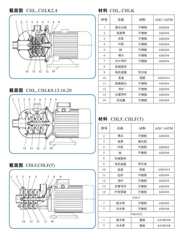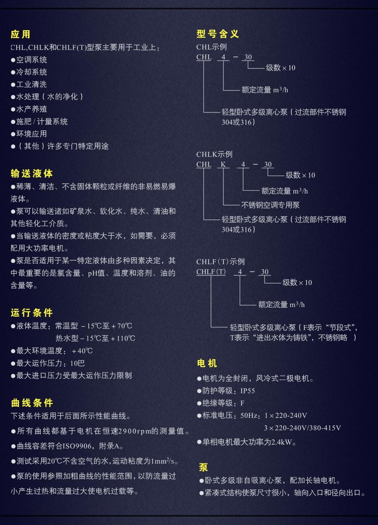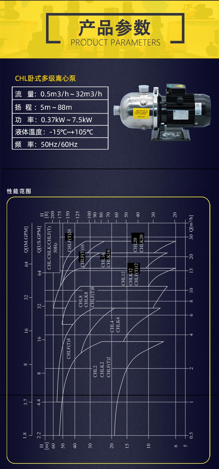 産品名稱:CHL,CHLK,CHLF(T)輕型卧式多級離心泵 技術參數 …