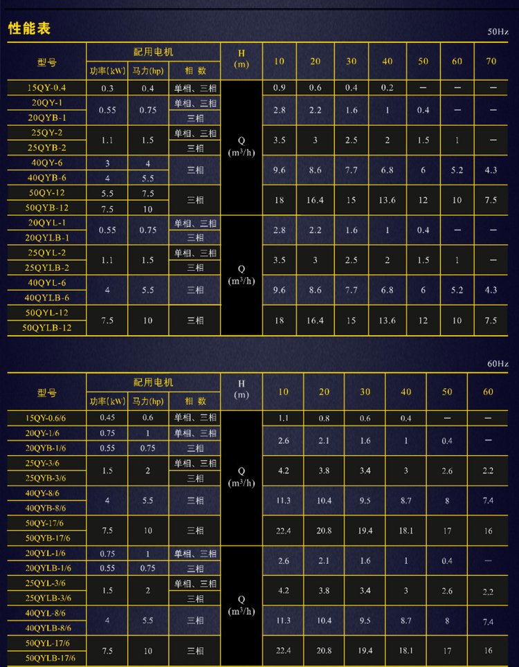 揚程:10m~70m