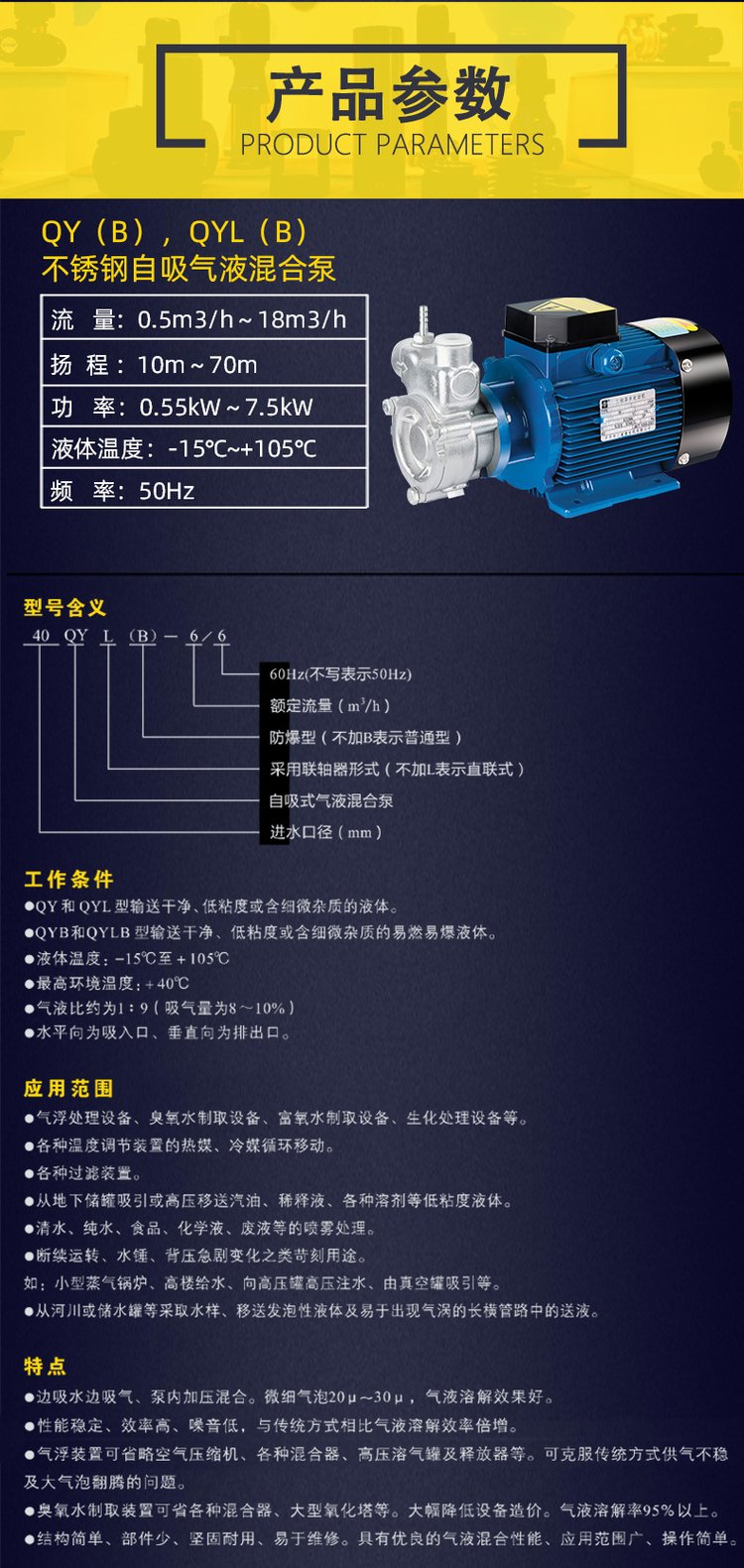 産品名稱:QY(B),QYL(B)不鏽鋼自吸式氣液混合泵溶氣臭氧泵